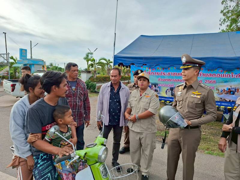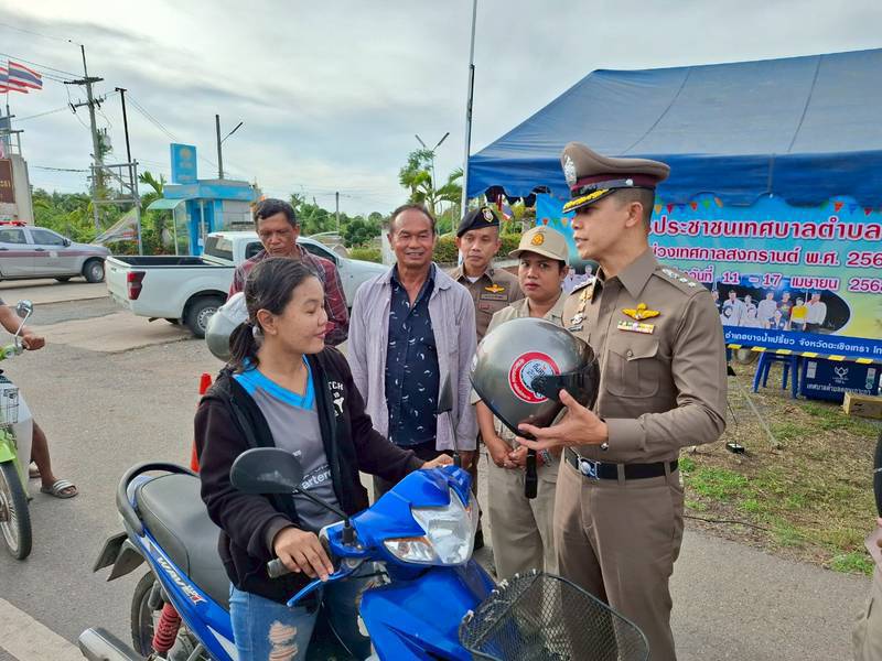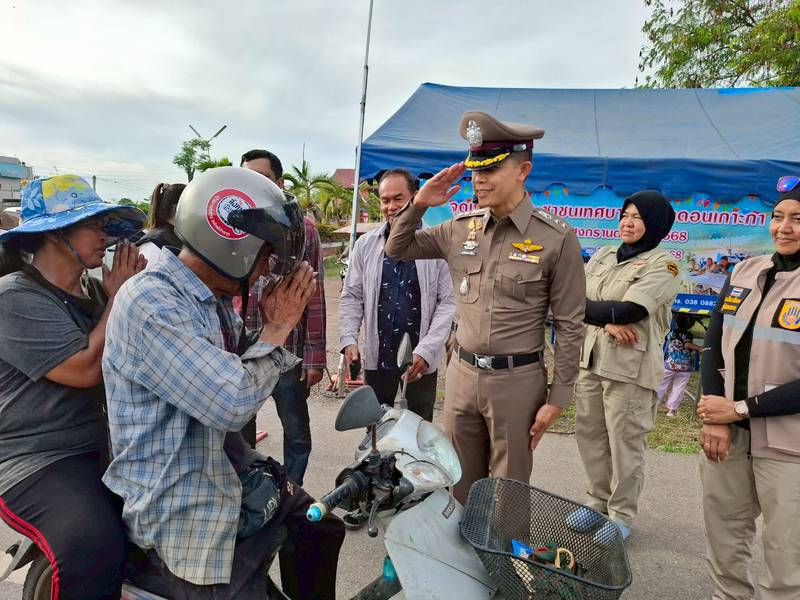 รอง ผกก.ป.สภ.ฉิมพลี, พ.ต.ท.วีรพงฐ์ รักสี สวป.ฯ ออกตรวจสภาพการจราจร ถนน.5006(ดอนฉิมพลี -บางน้ำเปรี้ยว)เยี่ยมจุดบริการประชาชน บริเวณ ทต.ดอนเกาะกา(ถนน ฉช.5006)ช่วงเทศกาลสงกรานต์ 2568 ต.ดอนเกาะกา อ.บางน้ำเปรี้ยว จว.ฉะเชิงเทรา พบ จนท.ฝ่ายปกครอง,อสม.,อพปร. อยู่ปฏิบัติหน้าที่ รายงานเหตุการณ์ปกติ สอบถามปัญหาและให้กำลังใจการปฏิบัติหน้าที่/มอบเครื่องดื่ม เพื่อเป็นขวัญกำลังใจและรณรงค์การขับขี่ปลอดภัยสวมหมวกนิรภัยให้กับประชาชนผู้ใช้รถใช้ถนนช่วงเทศกาลสงกรานต์ 2568