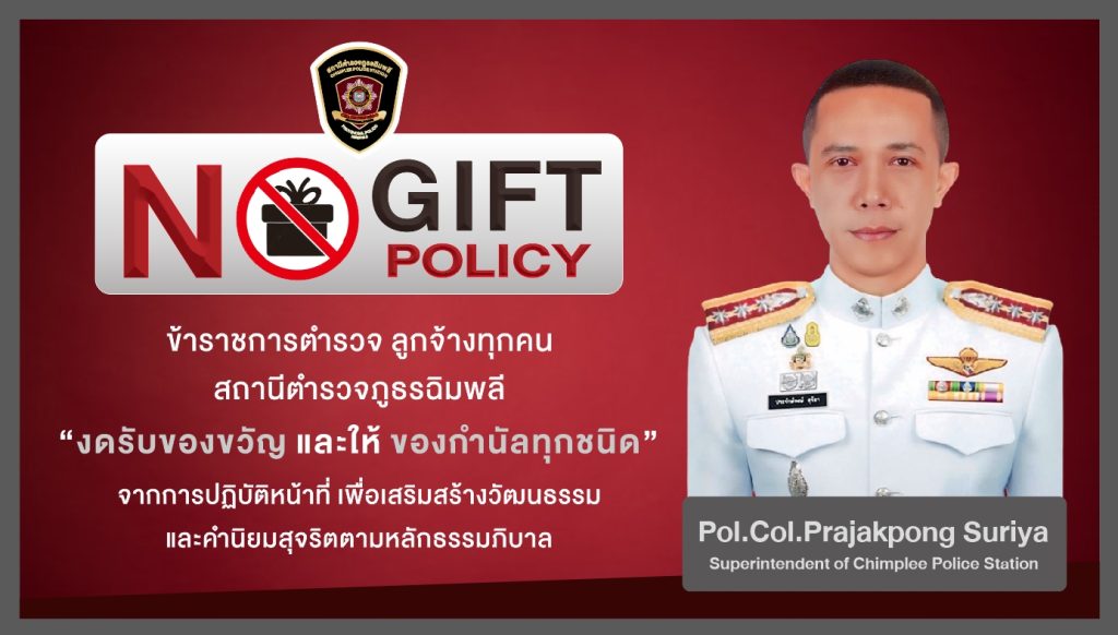 ประกาศสถานีตํารวจภูธรฉิมพลี เรื่อง นโยบายต่อต้านการรับสินบน (Anti-Bribery Policy) และการไม่รับของขวัญของกํานัลหรือประโยชน์อื่นใด (No Gift Policy) จากการปฏิบัติหน้าที่ประจําปีงบประมาณ พ.ศ.2568